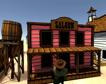 Wait for the toll of the clock tower... and shoot your opponent! Watch where you're aiming... you're drunk!